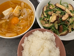 おはよーございます! ランです^^ やーっと金曜日👏 毎度、週末もお仕事やけど金曜までくるとなーんか嬉しい🙃 そして前のブログで書いた昨日の夜ご飯は… チゲスープと豆苗としいたけのごまポン酢和えでした!!! 我ながら美味しくてめっちゃ食べてしもた🐷💦 1回の自炊でこんなに体が元気💪✨