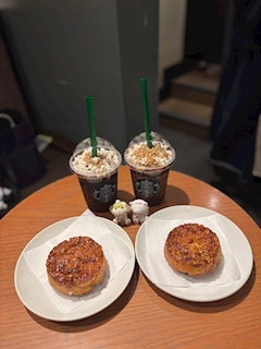 スタバの新作飲みました🍫🤍🤍 甘かった🤯 上に乗ってるマシュマロが美味しかった🥳 冬のスタバだーいすき!!!