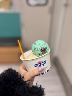 昨日超寒かったのに 退勤後にアイス食べた🍨笑 Twitterで見て美味しそうって思ったやつ🤩🍨 塩ちんすこうバタースコッチにチョコミント💕💕 3年前に沖縄旅行で食べたぶりに ブルーシール行った💙✨ エスカで通りがかるたびに気になってて やっといけたの嬉しい! 美味しかった> ̫< ♡